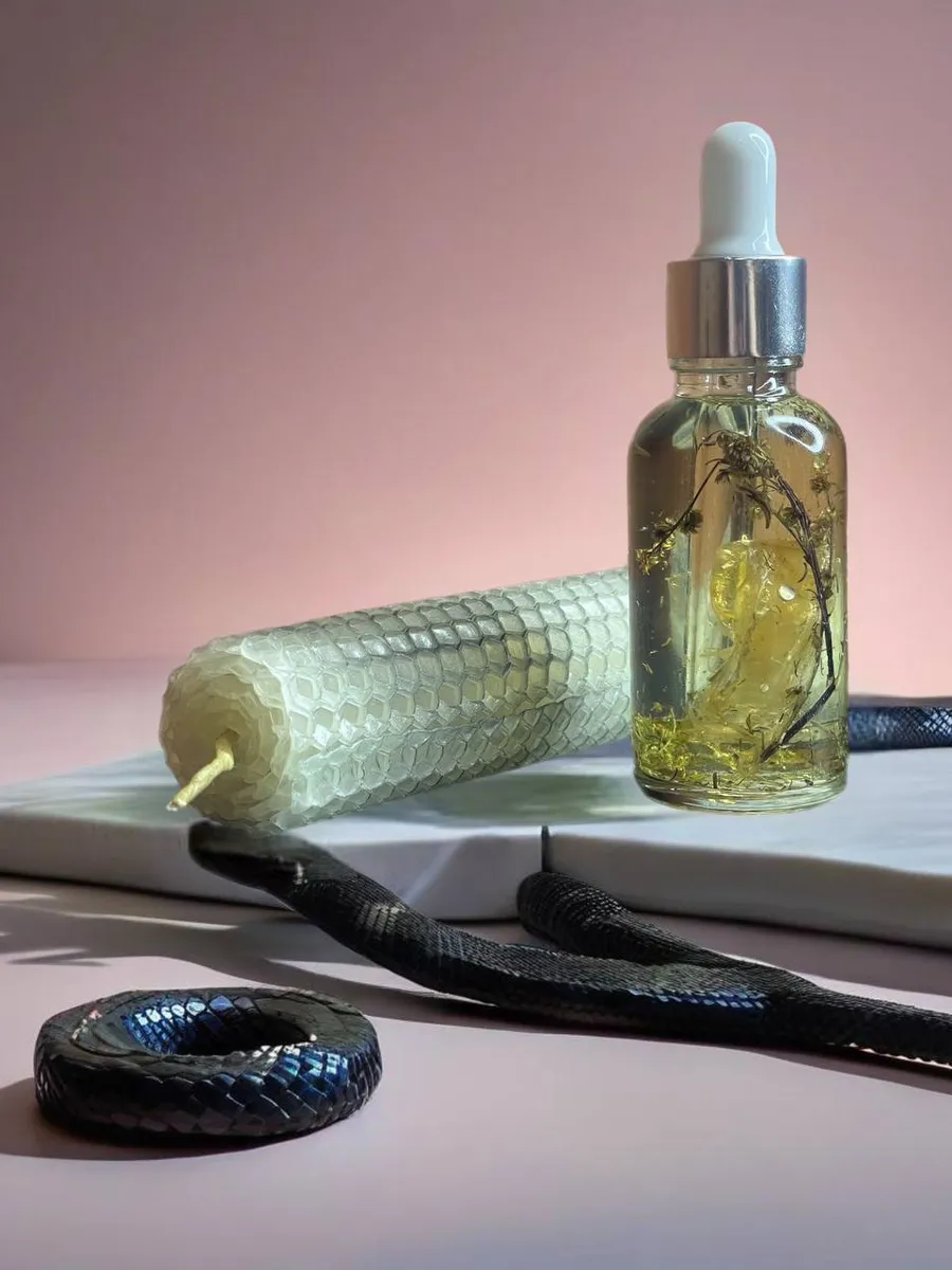 Наше зелье — это не просто магическое масло, это концентрат силы и глубокой мудрости природы. Змеиный выползок известен своими очищающими свойствами. Он помогает снять энергетические блоки, защитить от злых взглядов и оберегает от негативного влияния окружающей среды. Использование этого зелья в ритуалах поможет вам: