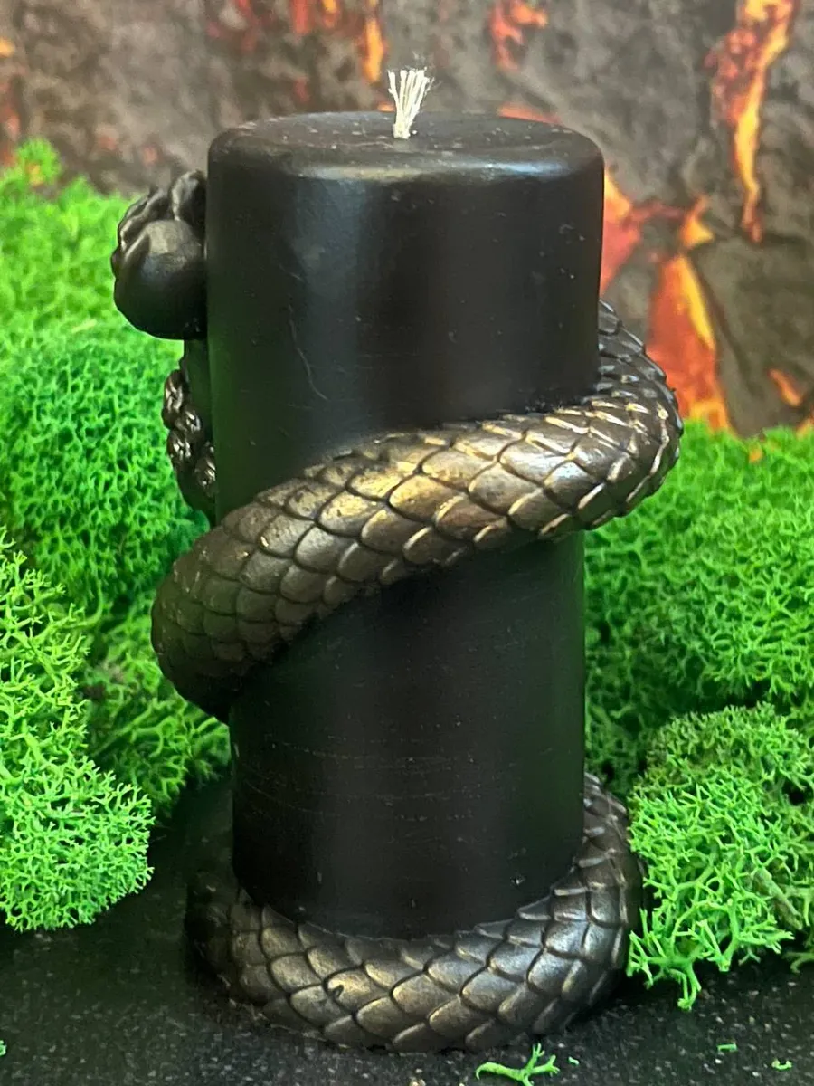 Декорированная змеёй – древним символом трансформации и власти над умами – магическая свеча «Внушение Мыслей» станет вашим уверенным союзником в самых сложных и неоднозначных ситуациях, когда кажется, что вариантов больше нет.